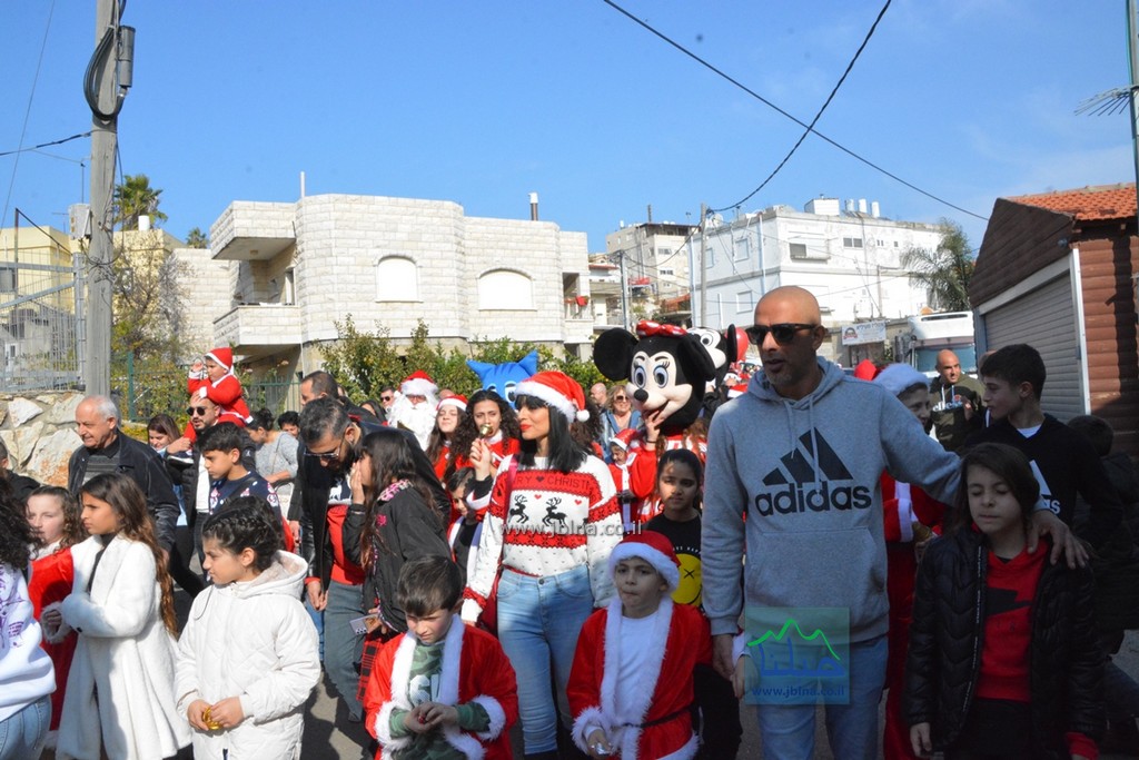 حيث جابت المسيرة شوارع البلدة وسط الأغاني الميلادية الفرحة, وفرقة الزفة حيفا التي تقدمت المسيرة بعد وصولها الى ساحة الكنيسة....
