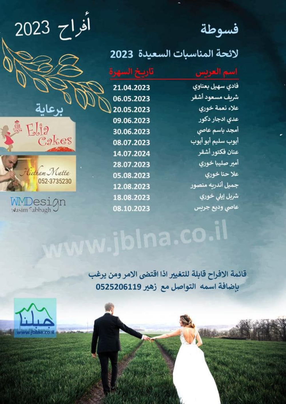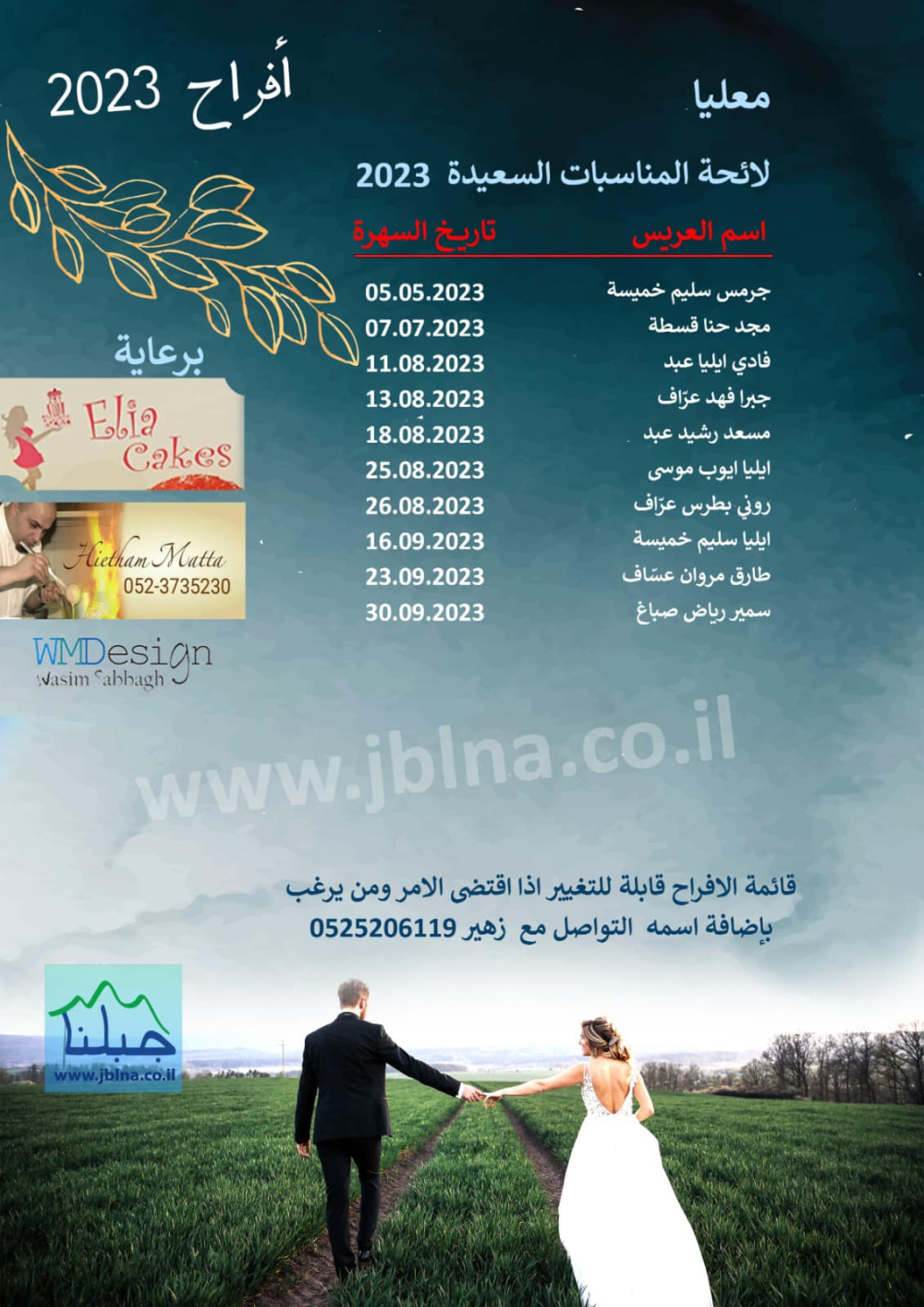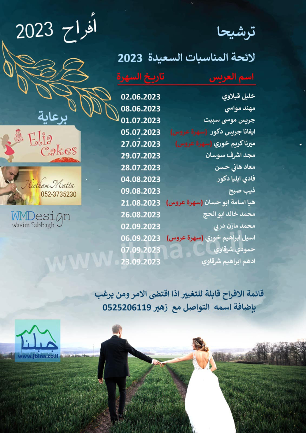 كما عودتكم مع بداية كل سنة جديدة- اعرض عليكم مواعيد الافراح والسهرات في منطقتنا: #معليا #ترشيحا #فسوطة #البقيعة