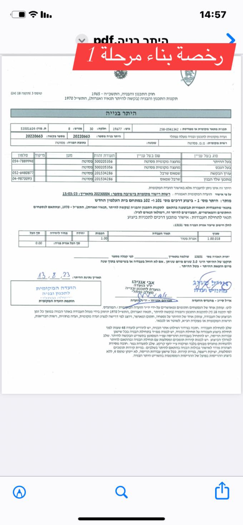 بعد ذلك كان بالامكان التوجه للجنة التنظيم المحلية للحصول على رخصة بناء، وفعلا تم الحصول في الاسابيع الاخيرة على رخصة بناء لتنفيذ الجزء الاول من اعمال التطوير