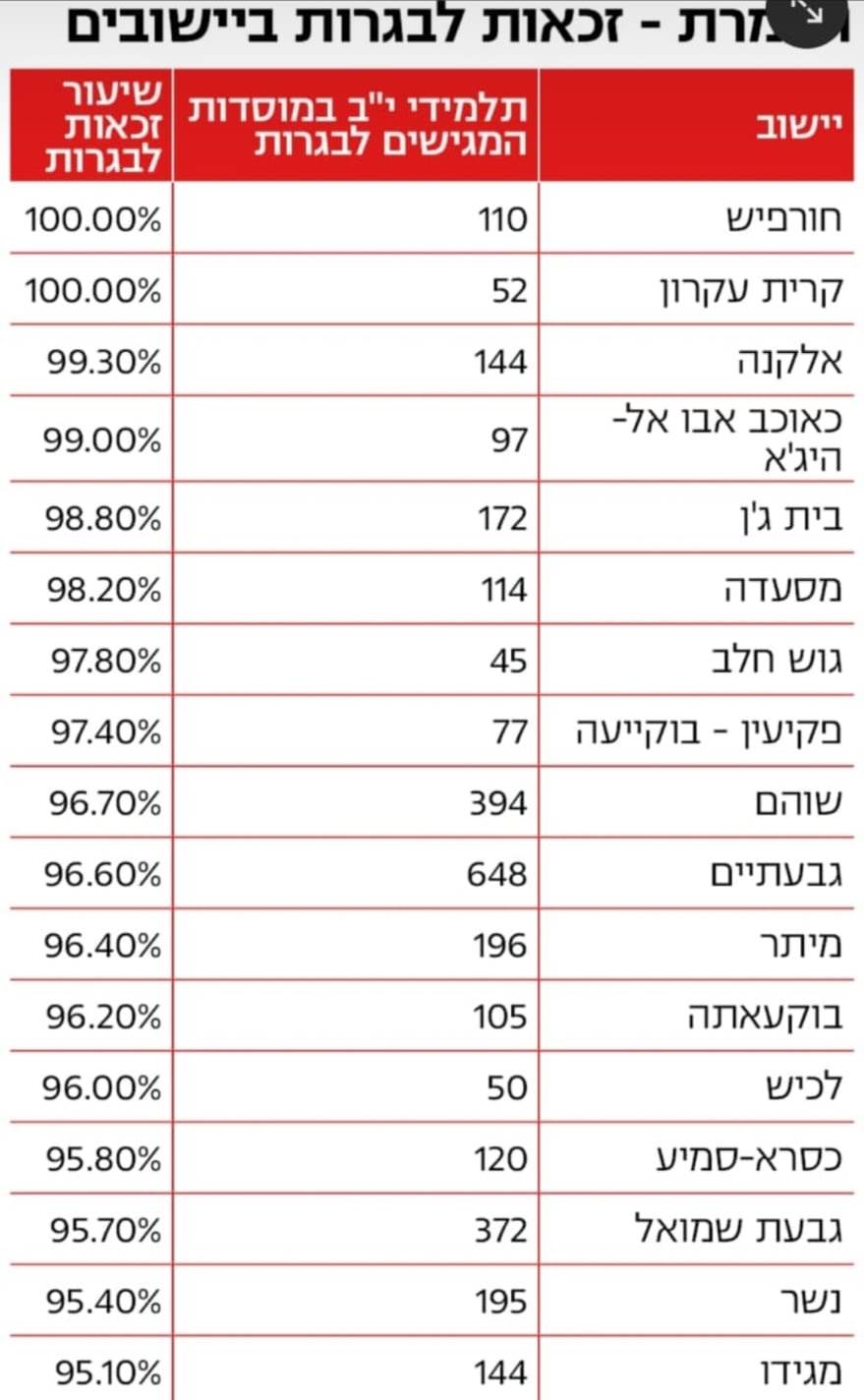 حيث تقدم للامتحانات 73 تلميذًا وتسبقها فقط مدرسة קרית עקרון