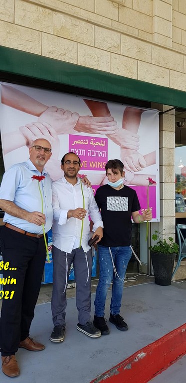 זה המסר של אזורנו הנפלא- מחר בבוקר נפגשים אצל גיא יהודים וערבים ומחלקים סטיקרים שתרם ג/ריס מחול מבית דפוס סמא ומחלקי גם פרחים