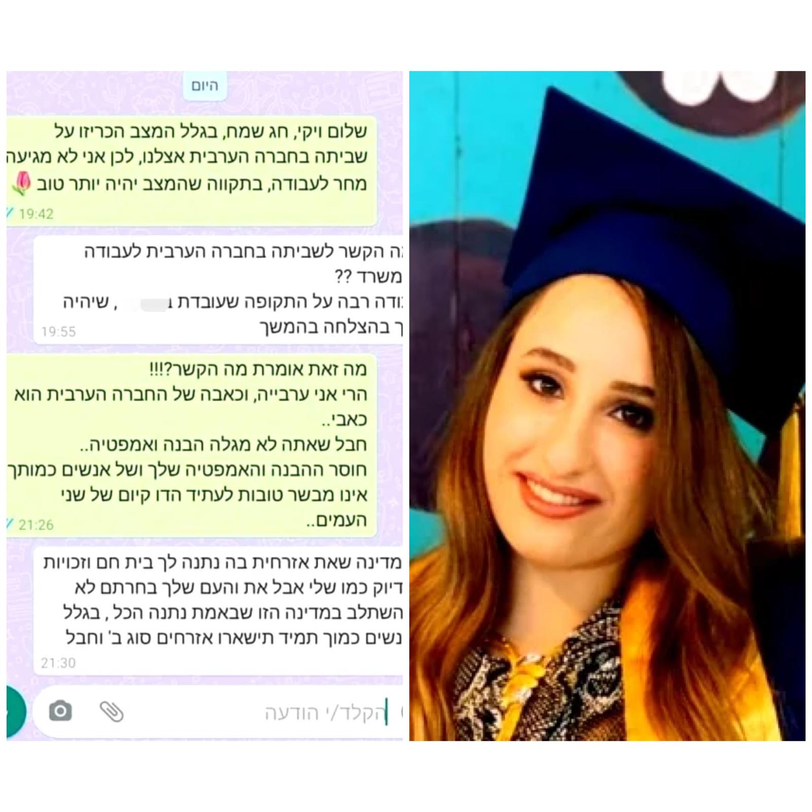 برسالة مكتوبة ,فصل المهندسة اية بيدوسي من كفرقرع من عملها بعد اخبار الشركة التزامها باضراب المجتمع العربي