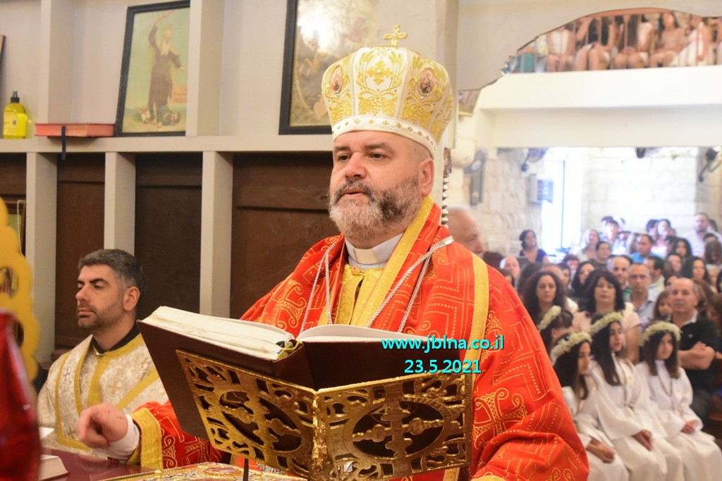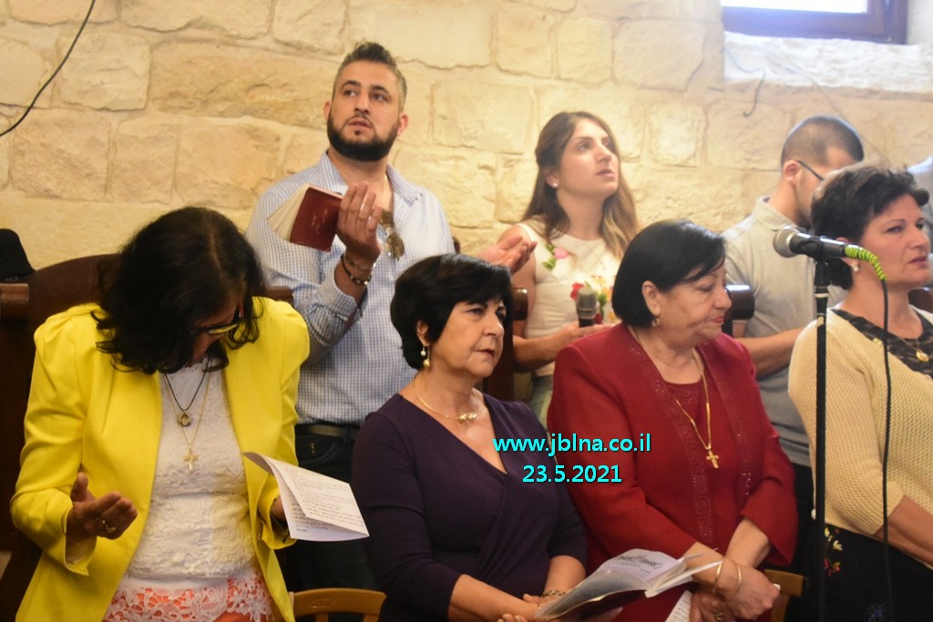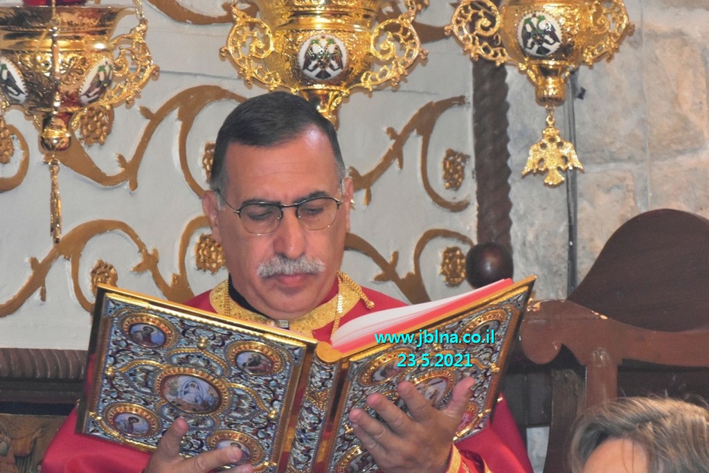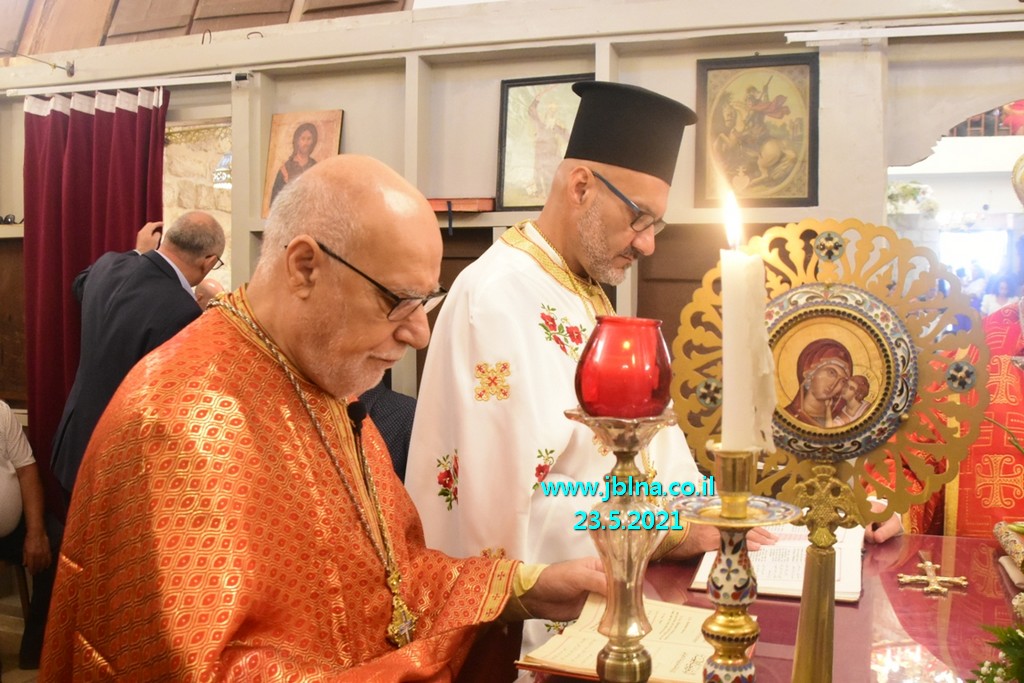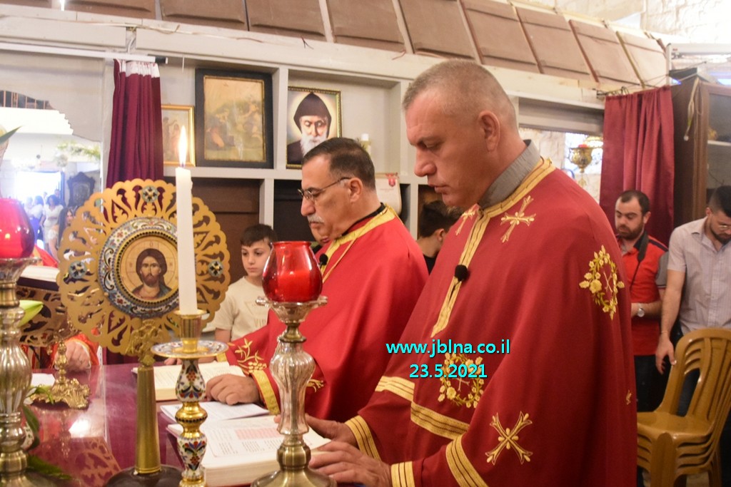تراس القداس سيادة المطران يوسف متى راعي ابرشية عكا وحيفا والناصرة وسائر الجليل بمرافقة كاهن الرعية الاب نديم شقور, الاب الياس عبد النائب العام, الاب جبران موراني والاب ابراهيم شوفاني وجوقة الكنيسة. إضافة الى المحتفى بهم, اهاليهم الاقرباء وأصحاب العيد ارملة المرحوم الياس توني وأولادها.