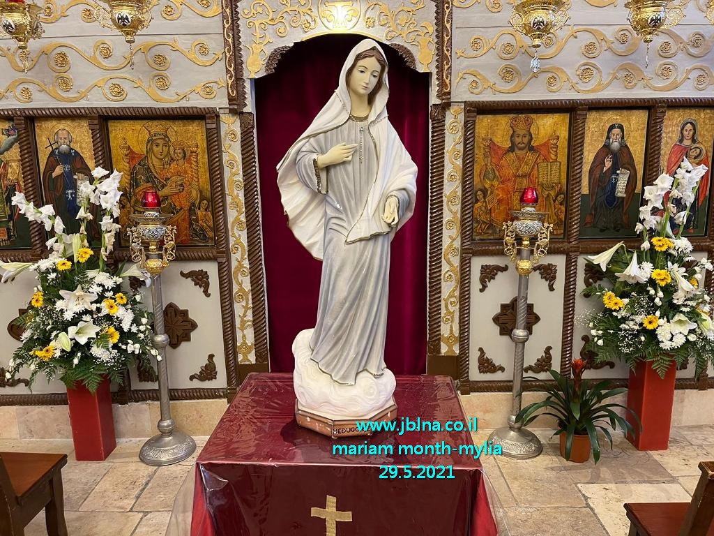 بمناسبة ختام الشهر المريمي ,اقيمت عصر اليوم السبت في معليا, صلاة المسبحة ومن بعدها مسيرة السيدة العذراء من كنيسة السيدة الى دير الراهبات في معليا ومركز العذراء ملكة السلام.