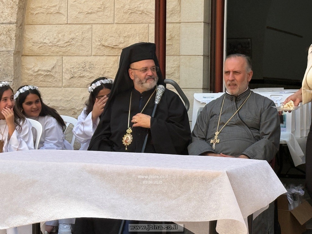 انتهاء القدس باركهم سيادة المطران والأب مشيل طعمة, وانتقل الحضور لساحة الكنيسة حيث أقيم احتفال متواضع شمل تراتيل وتقديم واجب للحضور..