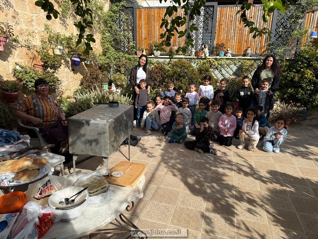 قامت أم يعقوب أمام الأطفال بعجن العجين وتخميره ثم رقّه وتحضيره لفرن الحطب، قبل أن تخبزه لهم ليعيشوا تجربة الخبز التقليدي بكل تفاصيلها.