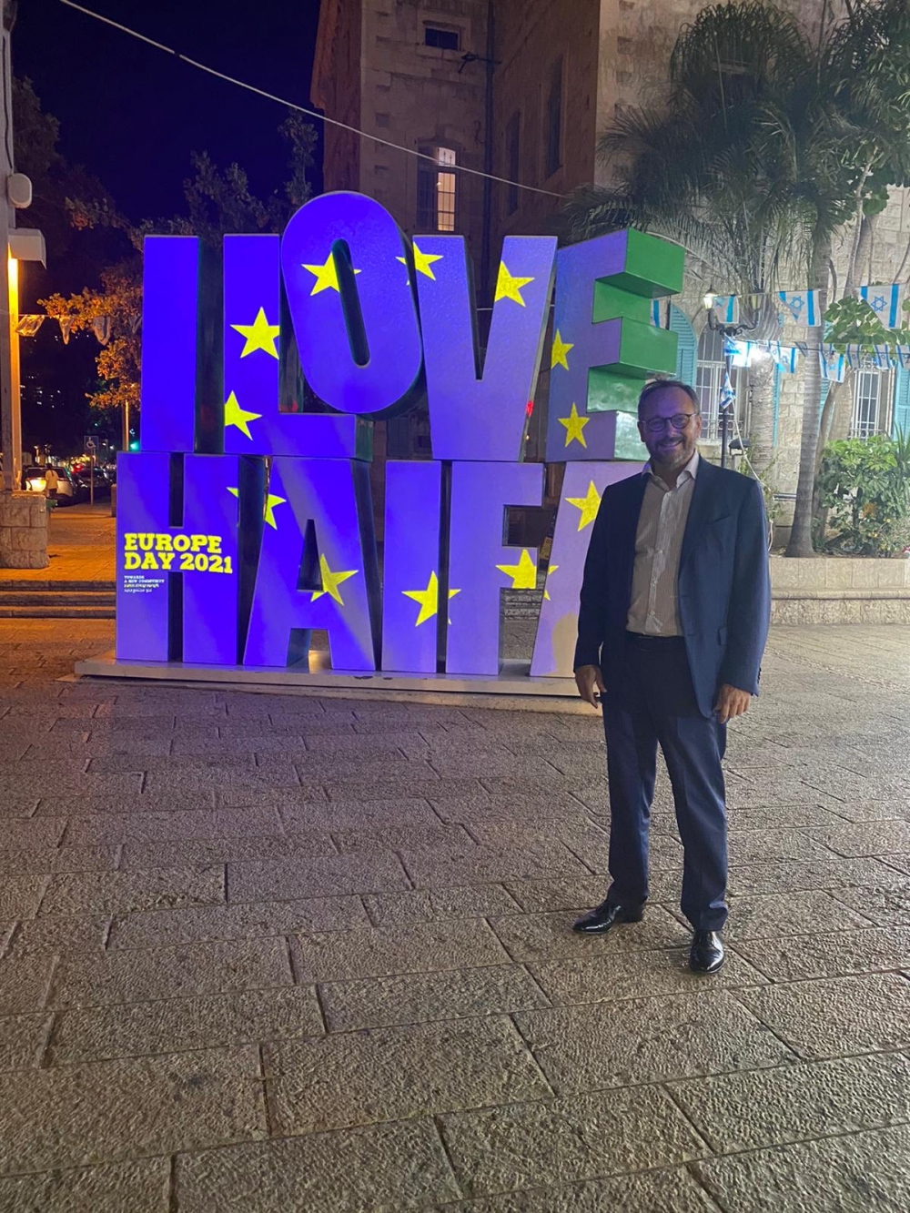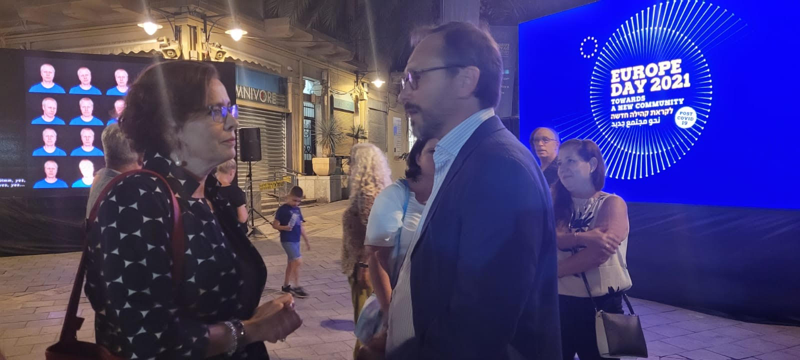 قام مساء أمس السبت السفير ايمانويل جيوفريه، سفير الاتحاد الاوروبي لدى دولة اسرائيل، بمشاركة رئيسة بلدية حيفا عينات كاليش-روتم، بافتتاح معرض فني مميز في منطقة "السوق التركي" (البلدة التحتى في حيفا) وذلك بمناسبة "يوم أوروبا" (العيد السنوي للاتحاد الاوروبي).