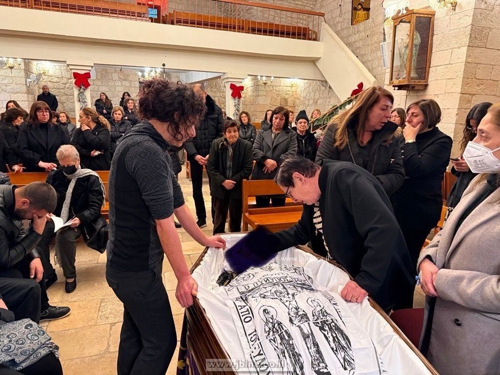 أُقيم قداس الجنازة في كنيسة السيدة – معليا، وترأسه الأب هادي مكاريوس قسيس ، كاهن الرعية، وشاركه الأب إلياس عبد، النائب العام في الأبرشية، وذلك بحضور واسع من أبناء البلدة، إلى جانب أبناء المرحومة وأحفادها الذين شاركوا الحضور مصابهم الأليم.