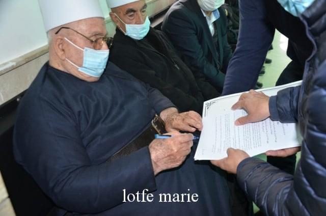 وقد انتهت المراسم بتوقيع وثيقة الصّلح الّتي تُليت على مسامع الحضور من قبل مندوبين عن العائلات وأعضاء لجنة الصّلح.