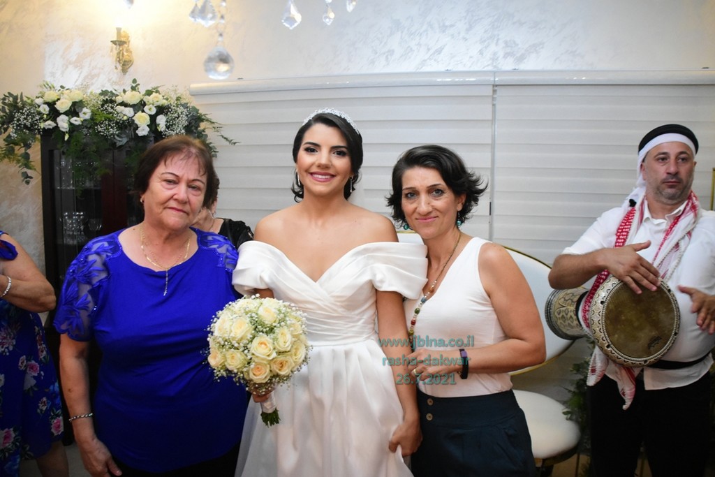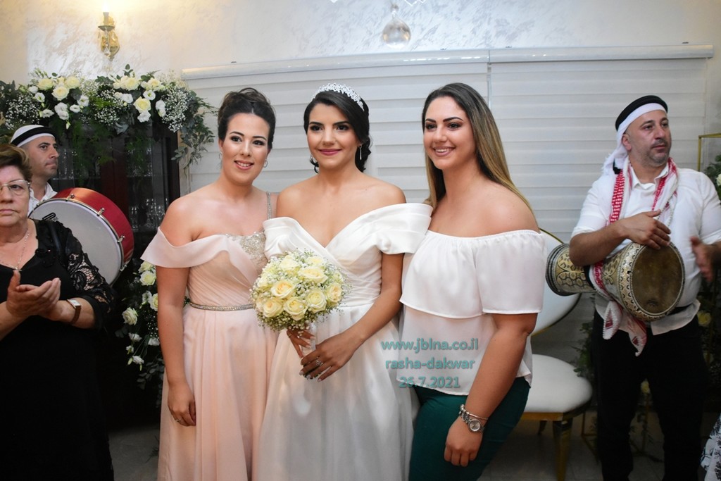 وخلال ذلك النساء, الصبايا يزفون العروسة ويُجلوها, (وفي القدم كان يضعونها على الصمدة).