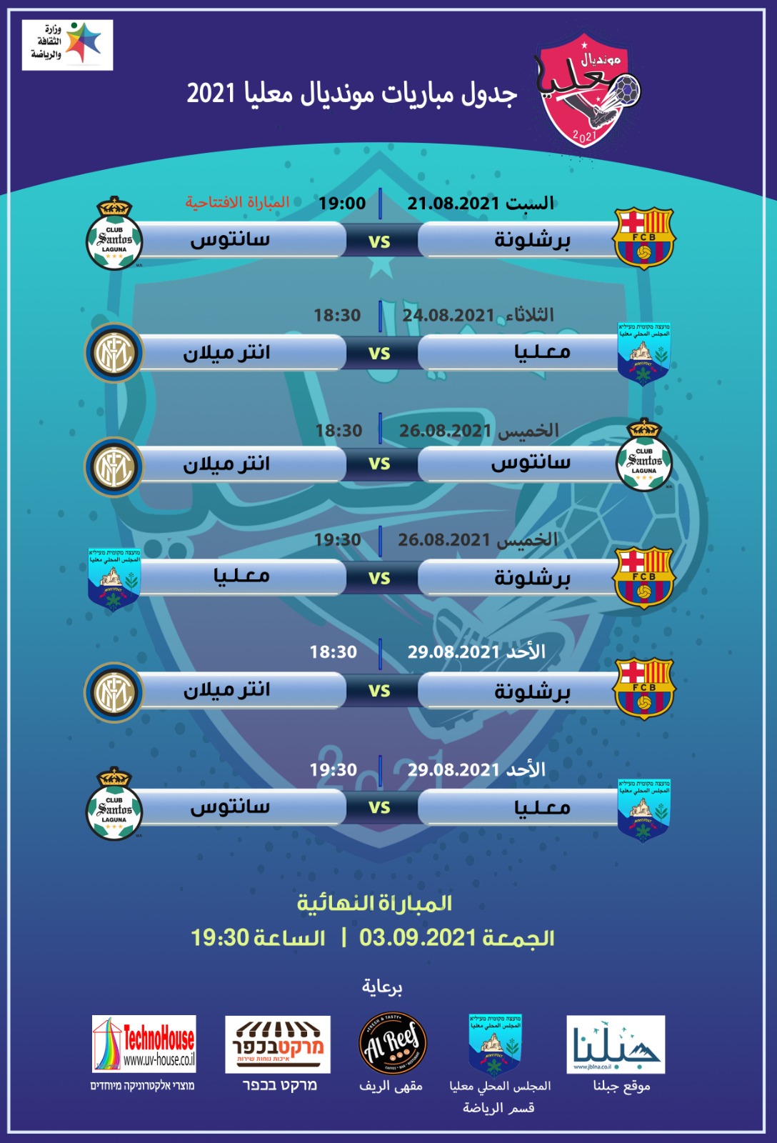 الانطلاق غدا الاحد في السابعة مساءً والنهائي في 10.9.2021