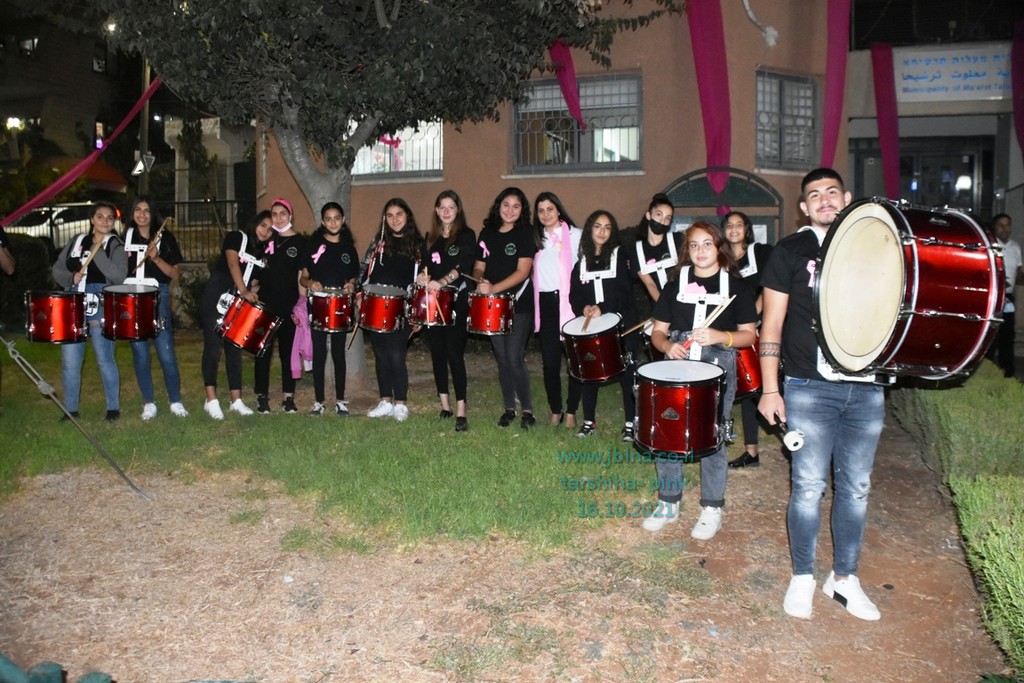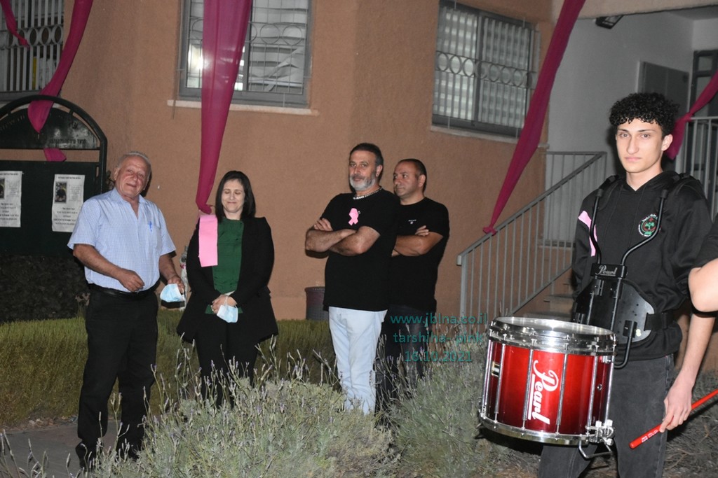 حيث تم توزيع وتعليق شعارات داعمة لمكافحة سرطان الثدي, وتم تنظيم فعالية عزف على القرب ودق الطبول برفقة العد التنازلي من قبل معلمة السرية وفاء نحاس, لأضاءة المبنى.