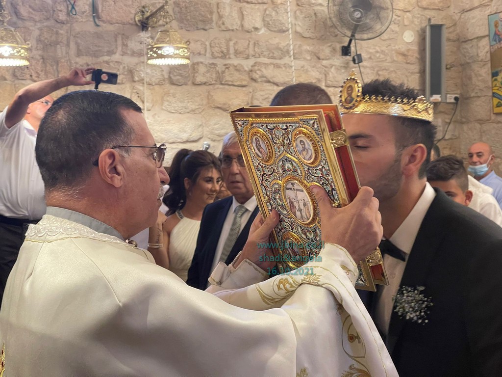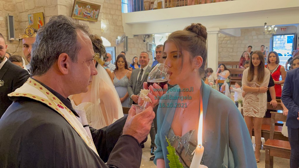 ترأس الاحتفال المقدس الاب نديم شقور والأب سيمون خوري, وبعد صلوات التقديس, تم اعلان العروسين, زوجين حسب تعاليم الرب والكنيسة.