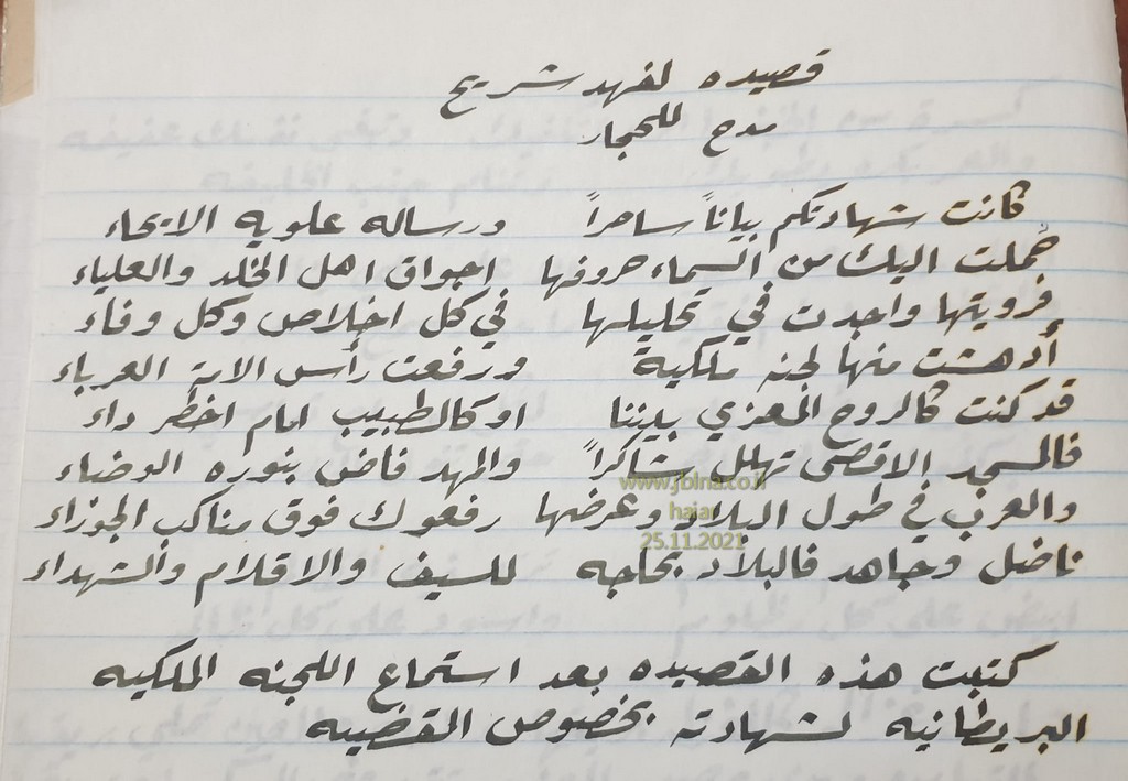 وقد كتبها المربي بسام عراف بخط يديه انذاك