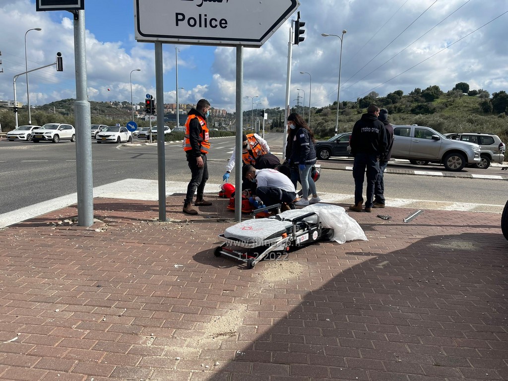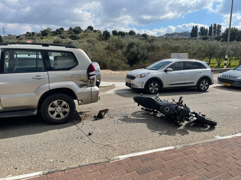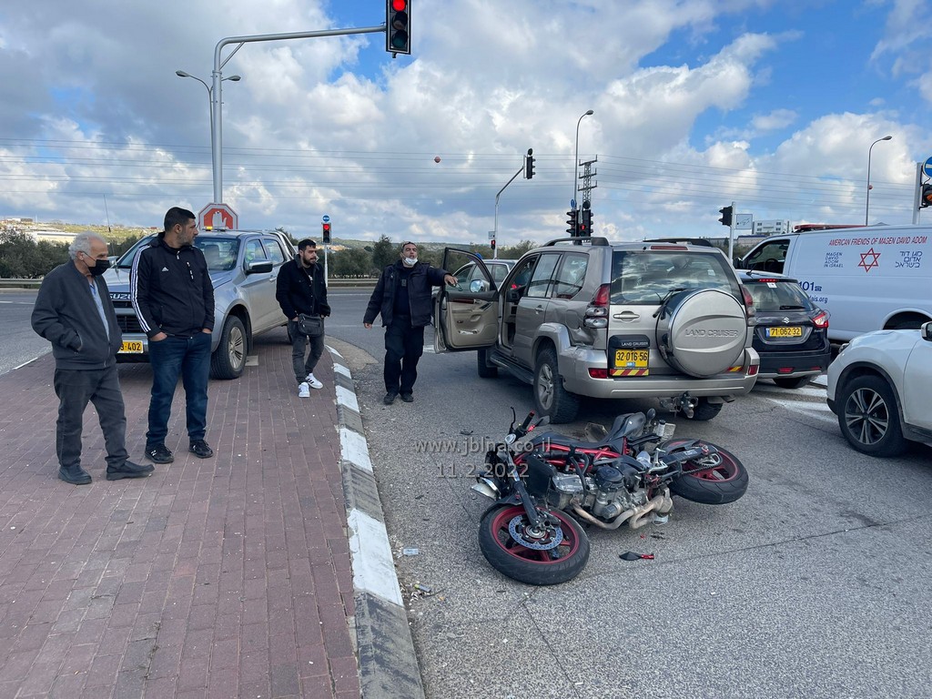 مفترق معونا- حادث اصطدام دراجة نارية بسيارة جيب واصابة شاب بجروح متوسطة