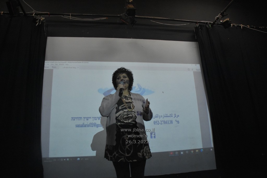 بعد ذلك تم دعوة المعالجة الاختصاصية للسلوكيات والضحك الأخت سناء فارس, لفقرة ابداعية تعليمية, وحركية عن اهمية الضحك وفوائده لصحة الانسان وبالاخص المرأة, الفعالية لاقت شغف ومشاركة فعالة من الحضور الذي غص المسرح هلى مدار 45 دقيقة من الزمن.