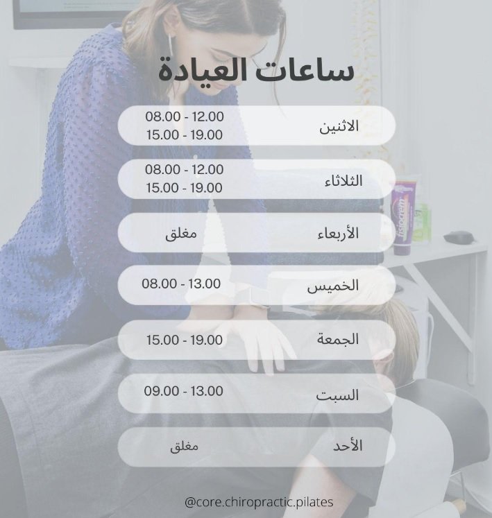 إن كنت تشعر بالتعب والإرهاق والآلام، فربما يكون الحل في التخلص من هذه المشاكل هو كيروبراكتيك (Chiropractic). توفر عيادة كيروبراكتيك لدينا خيارات علاجية غير جراحية بأيدٍ خبيرة لتخفيف الألم وزيادة مرونة الجسم والمفاصل، ولتحسين القوة والأداء في أنشطة الحياة اليومية.
