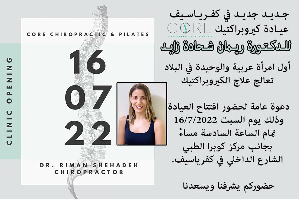 جديد في كفرياسيف عيادة كيروبراكتيك للدكتورة ريمان شحادة زايد