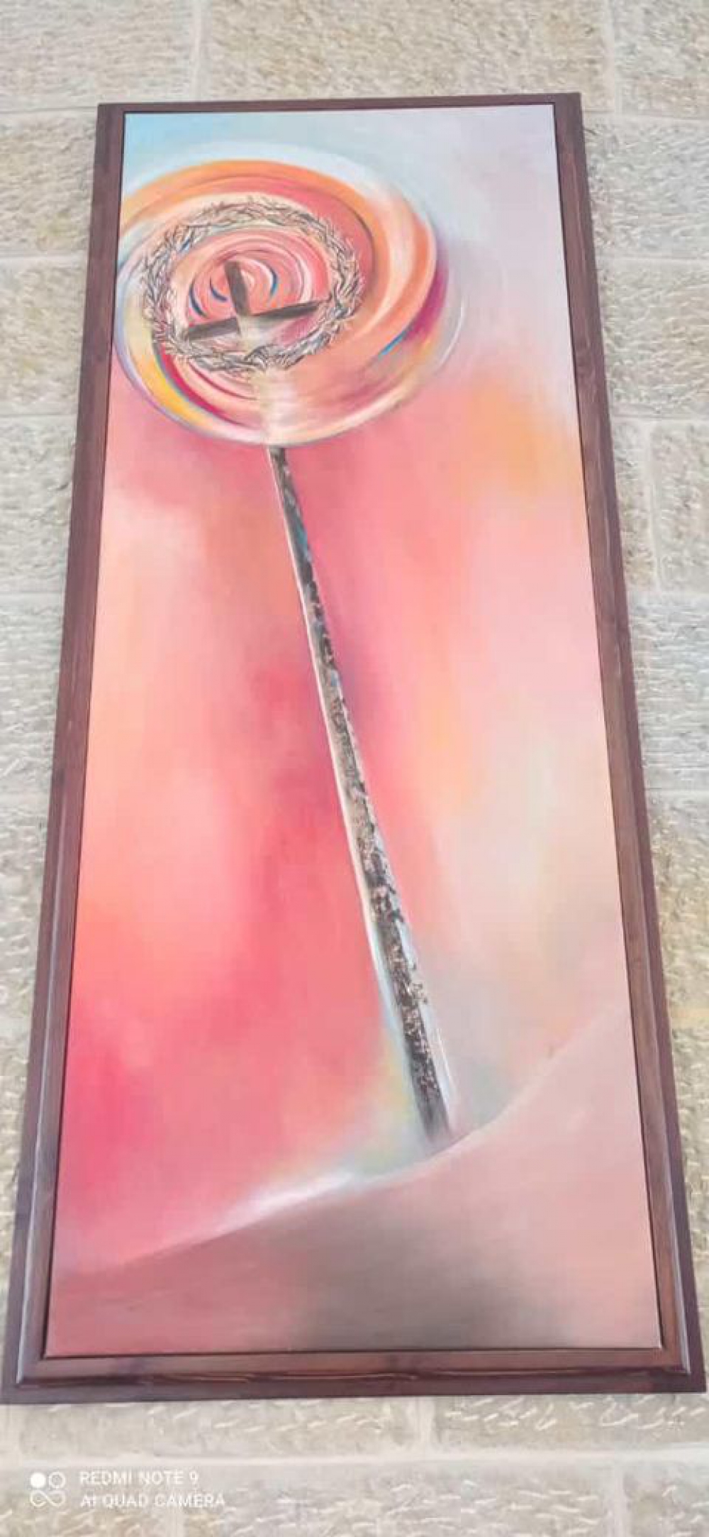الفنانة التشكيلية سسيل كاحلي تُبدع في رسم 3 لوحات زيتية، تقدمة لكنيسة يسوع الملك الانجيلية الاسقفية ترشيحا
