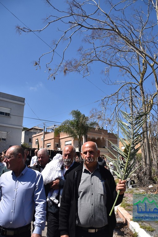 وبعد القداس طاف المحتفلون جوار الكنيسة حاملين الشعانين وقصف النخيل..