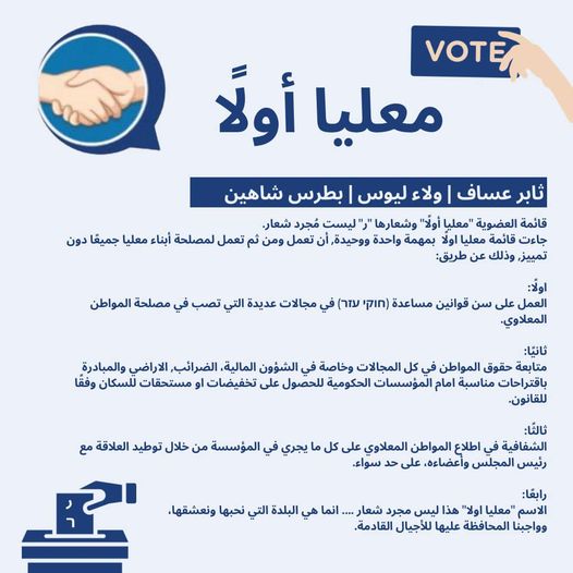 معليا- انتخابات السلطات المحلية- قائمة معليا اولًا وشعار ر