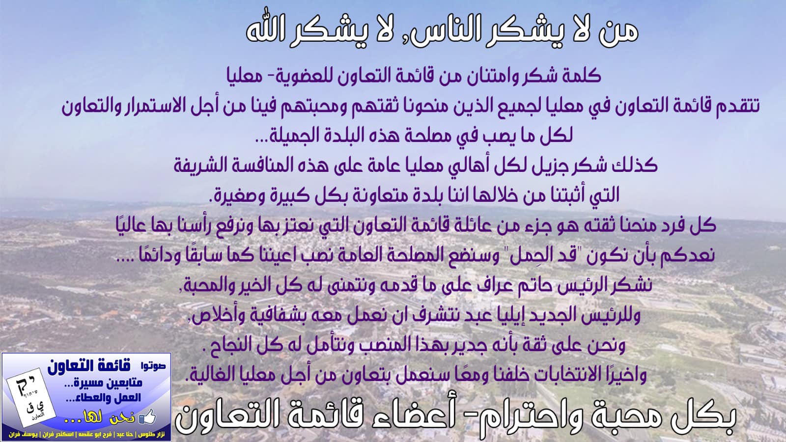29 فبراير كلمة شكر من قائمة التعاون لعضوية مجلس معليا من طرف : مصادر اخرى 2024-02-29 انتخابات السلطات المحلية 2023 كلمة شكر من قائمة التعاون لعضوية مجلس معليا
