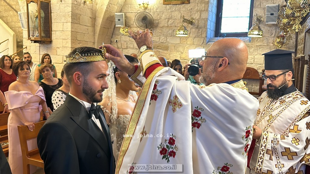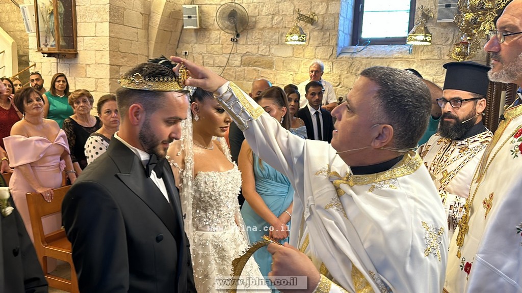 الكهنة باركا هذا الزواج بطقوس الكنيسة الكاثوليكية بعد بركة الرب يسوع والبسا الخواتم وتوجا العروسين بتاج الزواج المبارك, وقرأ الشماس الإنجيلي نضال بشارة الانجيل المقدس على رأسيهما...