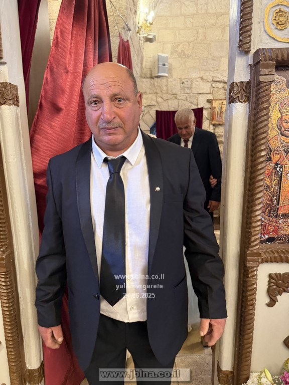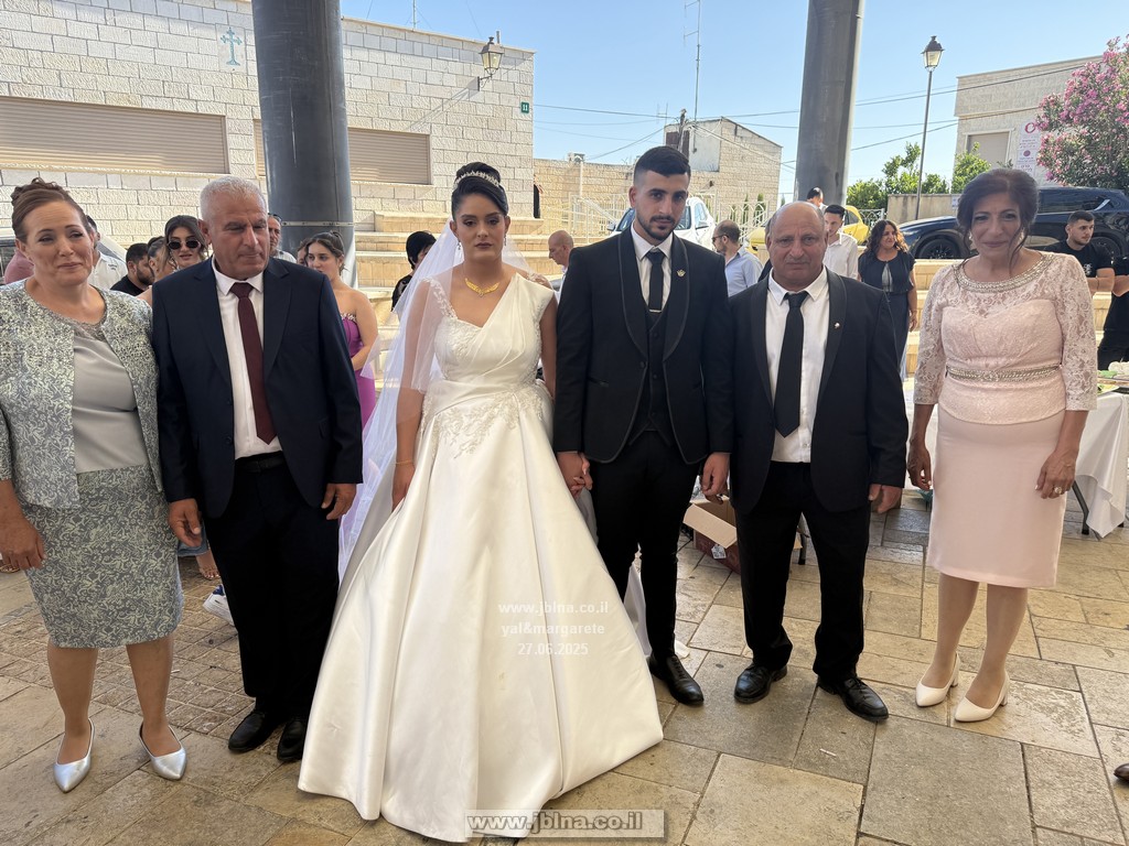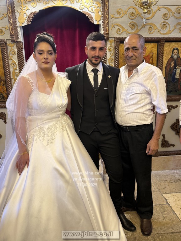مع كاهن الرعية الاب هادي مكاريوس قسيس, نائب المطران الاب الياس عبد والكاهن نضال سابا بشارة, دخل العروسين