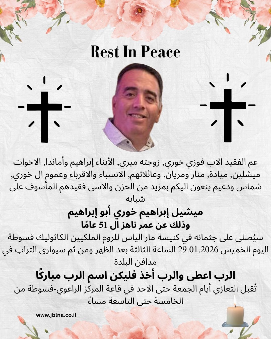 فسوطة تفجع بوفاة المأسوف على شبابه ميشيل ابراهيم خوري- ابو ابراهيم عن عمر ناهز 51 عامًا
