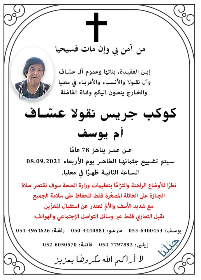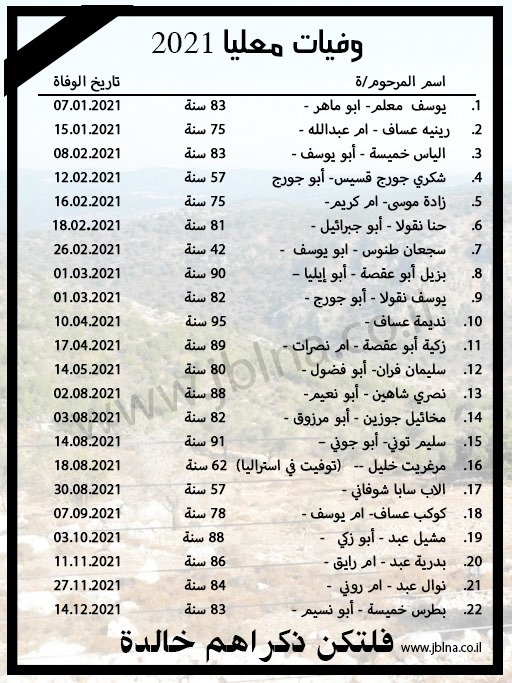 معليا- 22 عزيز وعزيزة رحلوا عنا في 2021 الى الديار السماوية- لنتذكرهم