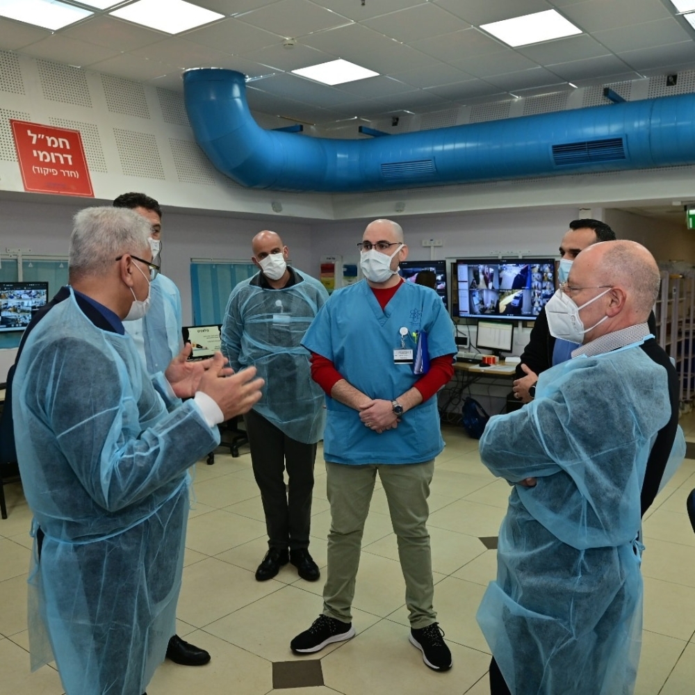 قام اليوم الأربعاء البروفيسور سلمان زرقا, منسق مكافحة الكورونا في البلاد بزيارة تفقدية للمركز الطبي الجليل, برفقة مدير المركز البروفيسور مسعد برهوم ونائبه الدكتور צבי שלג, وأطلع البروفيسور زرقا على آخر المستجدات والتحديات بما يخص الموجة الخامسة ومدى تأثيرها على عمل اقسام الكورونا في المركز.
