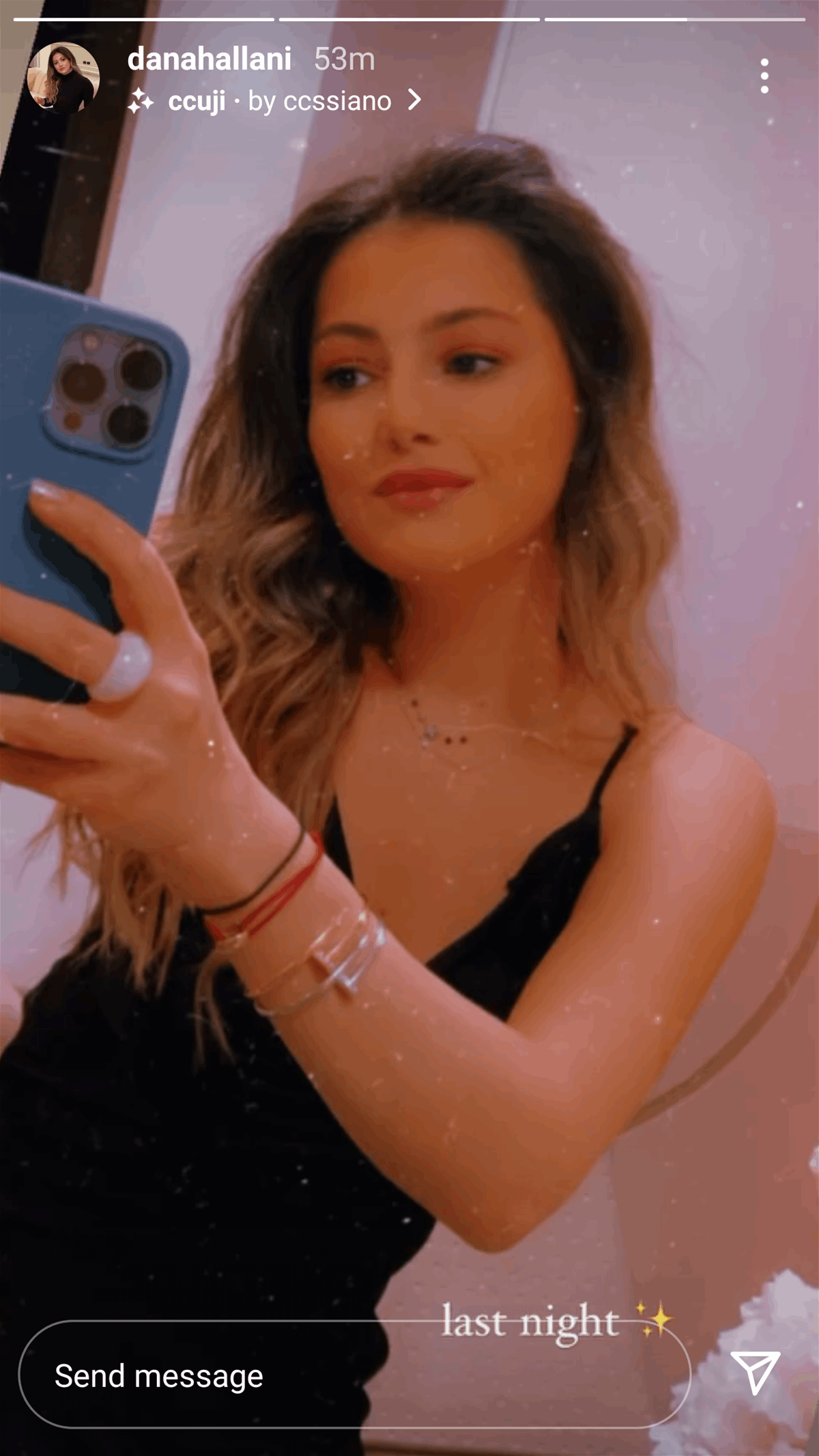نشرت دانا، إبنة الفنان عاصي الحلاني وملكة جمال لبنان السابقة كوليت الحلاني، صورة عبر خاصيّة "ستوري" عبر حسابها على "انستغرام"، ظهرت فيها بإطلالة ناعمة وجميلة بفستان أسود مكشوف عند الكتف.