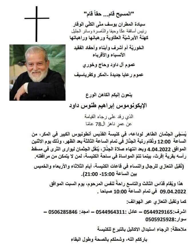 المرحوم كان رمزًا للتآخي والمحبة وهو مهجر من قرية إقرث وعايش حياته في قرية المكر.