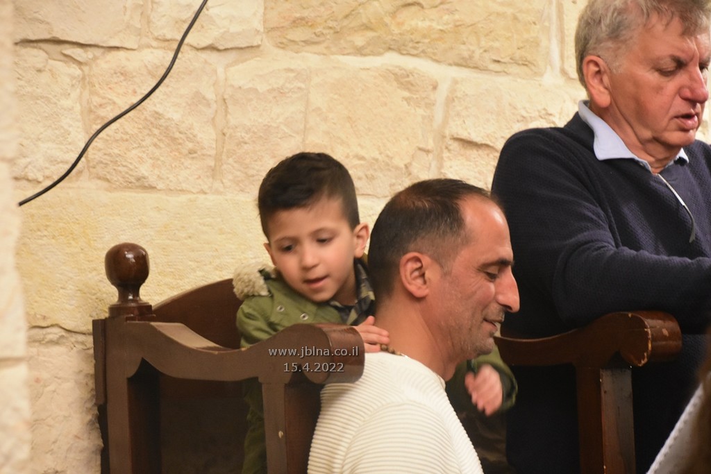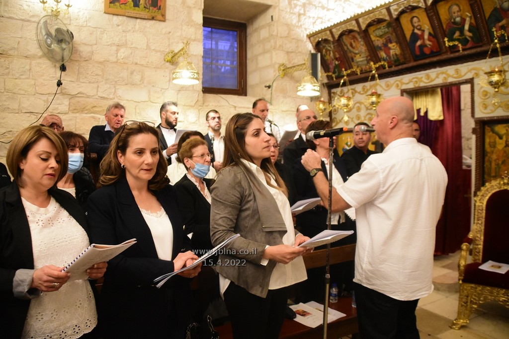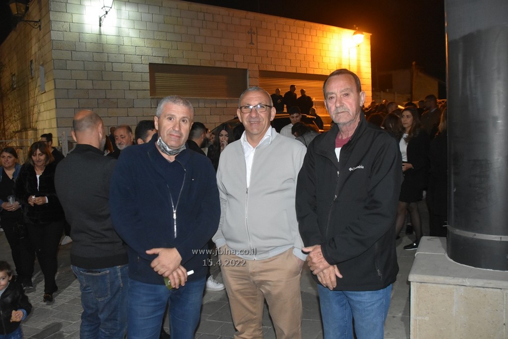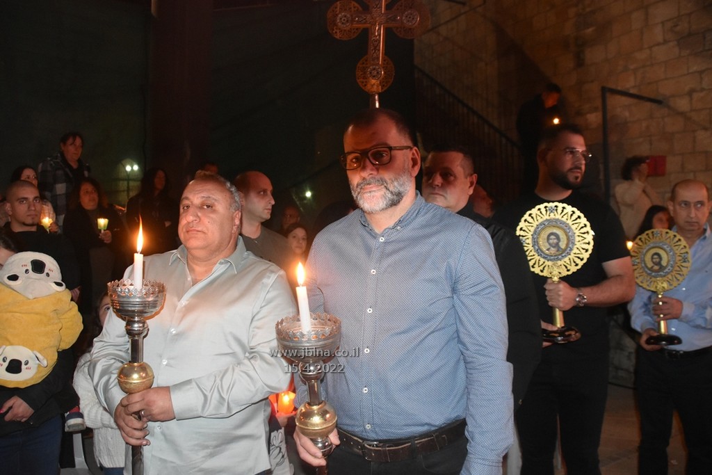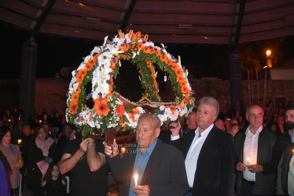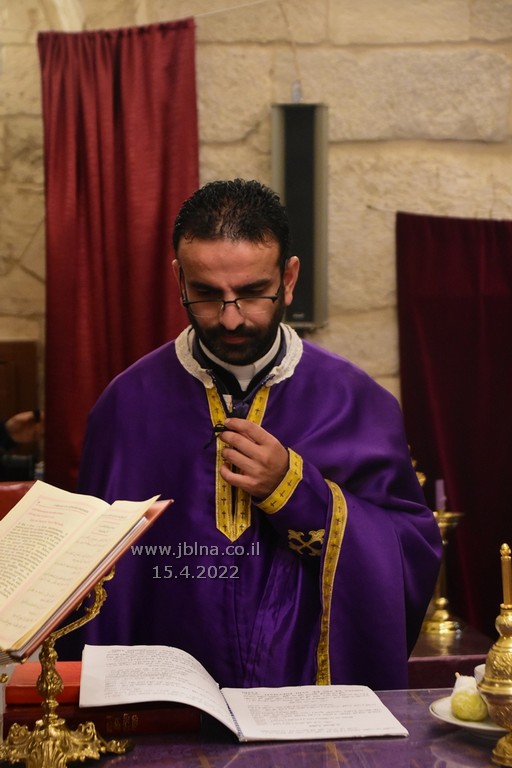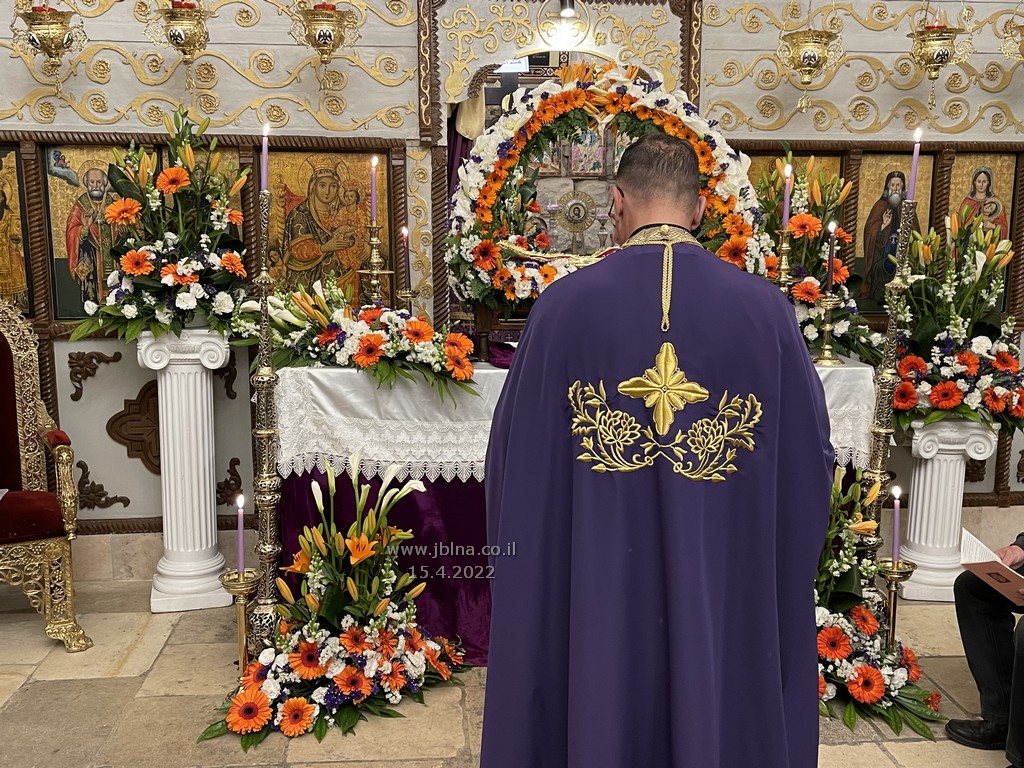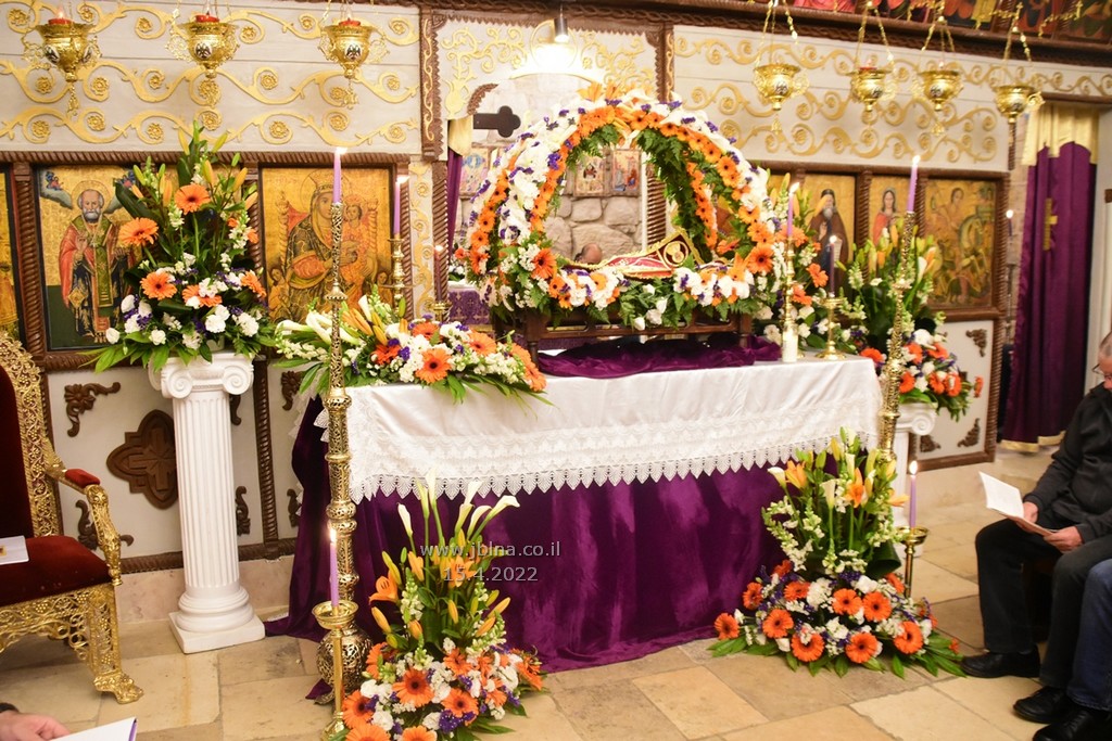 ادار القداس الالهي كاهن الرعية الاب نديم شقور والاب..... مع جوقة الكنيسة والمصلين., وبعد الصلوات المرافقة لهذه الليلة المهيبة, طاف الكهنة أولاً برش العطور على المصلين بمرافقة ترتيلة (حاملات الطيب), وفي ختام الجناز, أطفئت الانوار, واضيئت الشموع في ارجاء الكنيسة وباحتها, وطاف المسنين والمصلين بالسرير الذي يُمثل نعش يسوع بأجواء جميلة جداً بمرافقة طبول كشافة معليا...
