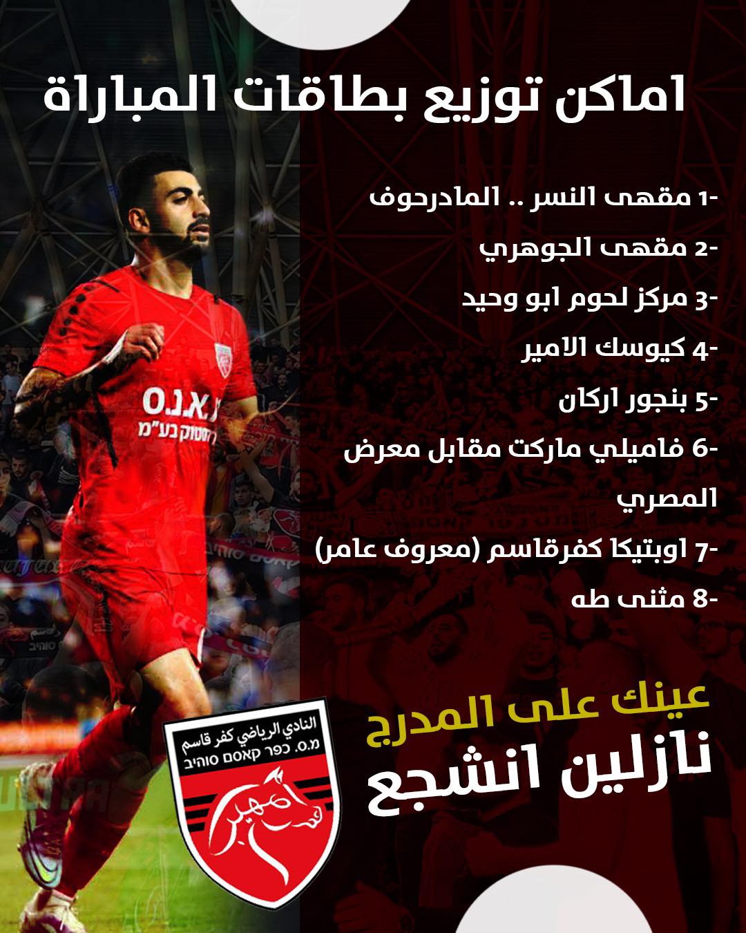 ادارة الفريق اتاحت الدخول المجاني لكل الجماهير لحضور مباراة القرن بالنسبة لكفرقاسم