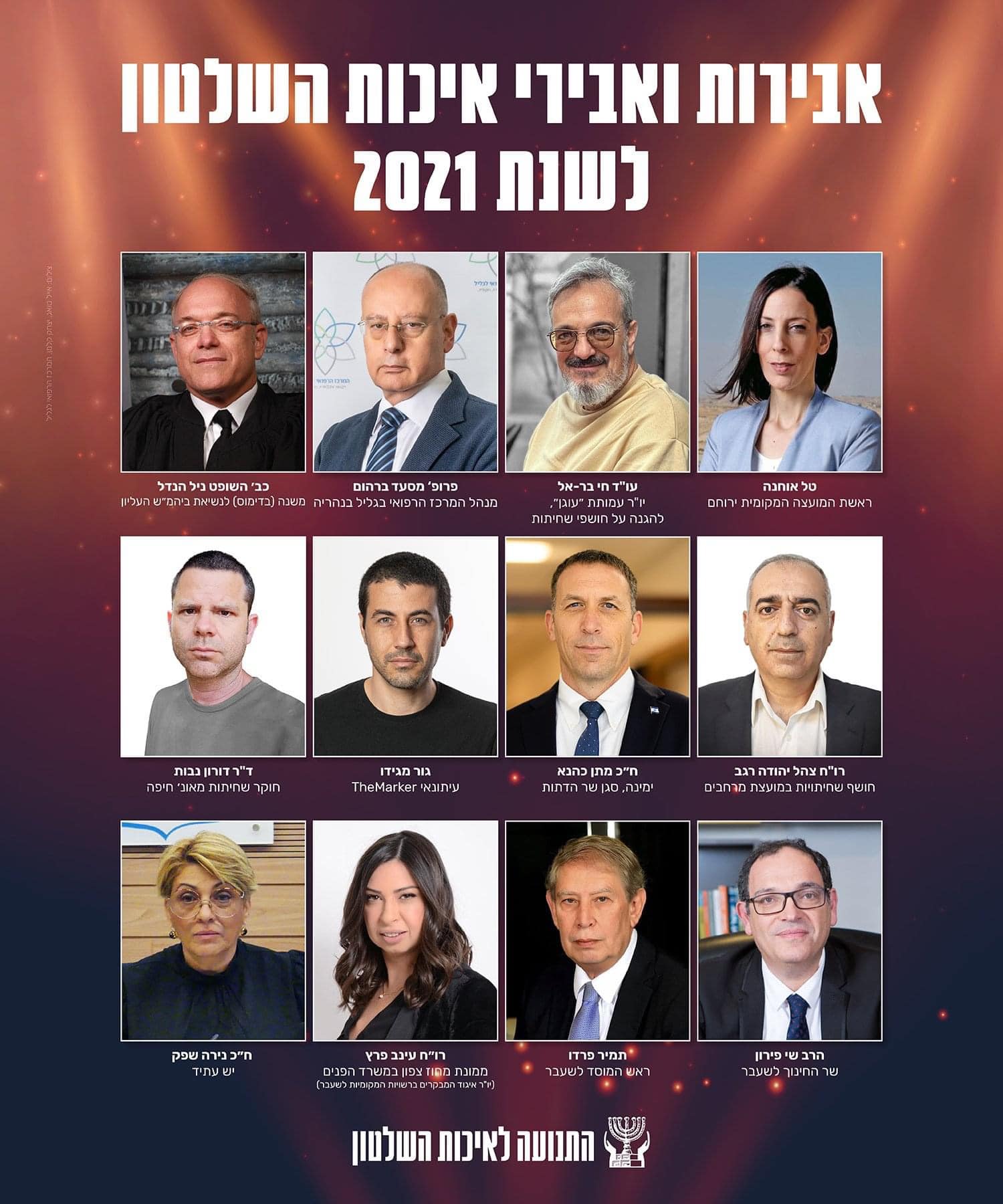 وذلك برفقة عدة بارزين في مجالاتهم وتعطى لأشخاص قدموا وأعطوا الكثير لعملهم، مجتمعهم وجودة السلطة وكذلك تحسين قيم النزاهة في مجال عملهم.