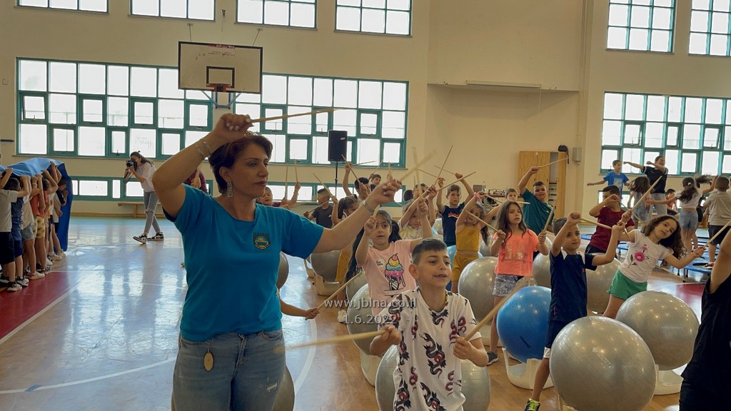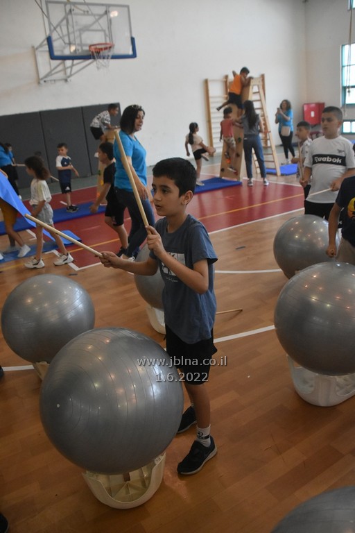وجاء دور الرياضة والحركة في القاعة الرياضية مع الايقاعات, القفز, والكرات العملاقة, والتي شارك بها تلاميذ الصفوف الدنيا بتفاعل كبير وفرح, بينما في الطبقة العليا, أقيم عرس عربي مع زفة, رقص, سحجة ودبكة رائعة من تلميذات وتلاميذ الصف الثامن.
