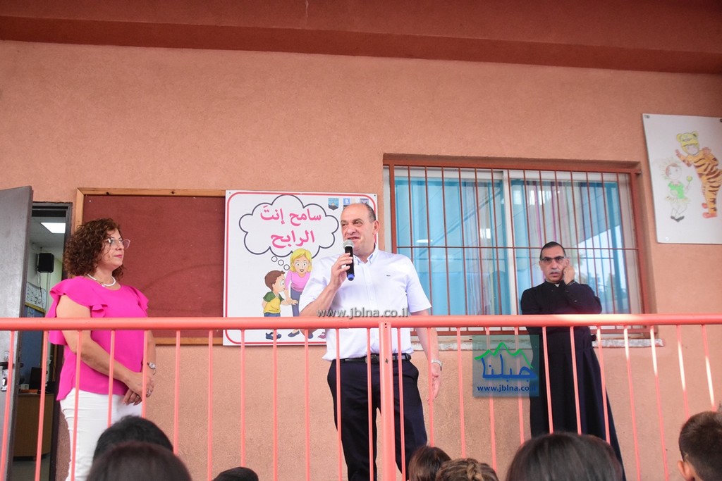 الاب نديم شقور قام بصلاة البركة على الجميع ورئيس المجلس المحلي حاتم عراف, رحب بالتلاميذ واهاليهم مؤكدًا أن المجلس المحلي يعمل كل ما في وسعه لدعم المسيرة التعليمية في المدرسة..